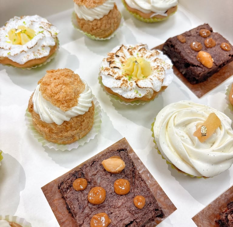 Brownies, Tartelettes, Cookies, Choux à la crème, ...